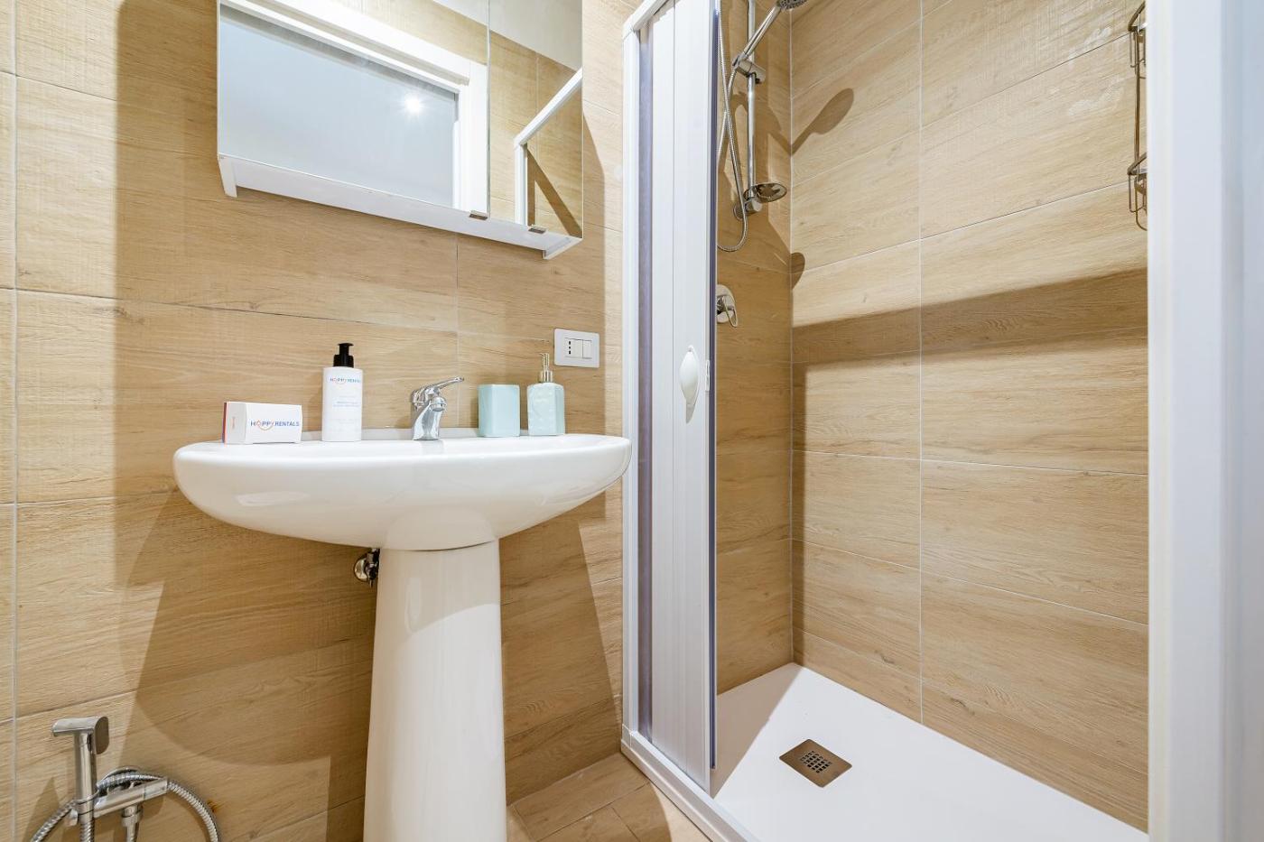 Appartamento con 1 Camera da Letto. This air-conditioned apartment features 1 living room, 1 separate bedroom and 1 bathroom with a shower. In the fully equipped kitchen, guests will find a stovetop, a refrigerator, kitchenware and an oven. This apartment has a coffee machine, a seating area, a flat-screen TV and outdoor furniture. The unit has 2 beds.