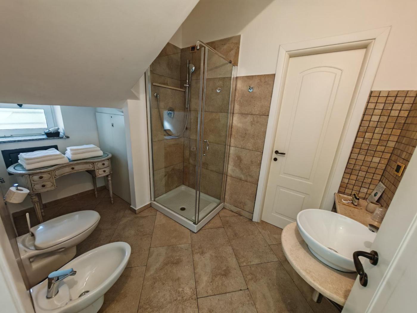Camera MatrimonialeDoppia con Letti Singoli con Bagno Privato. Offering free toiletries, this twindouble room includes a private bathroom with a shower, a bidet and a hairdryer. The twindouble room offers air conditioning, soundproof walls, a tea and coffee maker, a wardrobe and a flat-screen TV with streaming services. The unit offers 1 bed. ;
