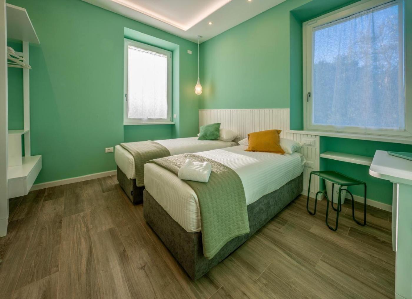 Suite Familiare. Offering free toiletries, this family room includes a private bathroom with a walk-in shower, a bidet and a hairdryer. The air-conditioned family room offers a flat-screen TV with streaming services, soundproof walls, a minibar, a tea and coffee maker as well as lake views. The unit offers 2 beds. ;