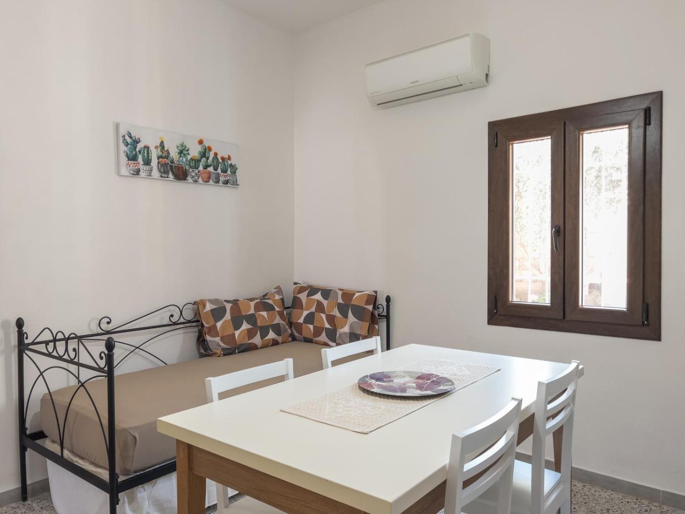 Questo appartamento con aria condizionata comprende 2 camere da letto, un soggiorno, una cucina con utensili piĂą frigorifero, e 1 bagno con bidet edi cortesia. Presso questo appartamento troverete asciugamani e lenzuola in dotazione.