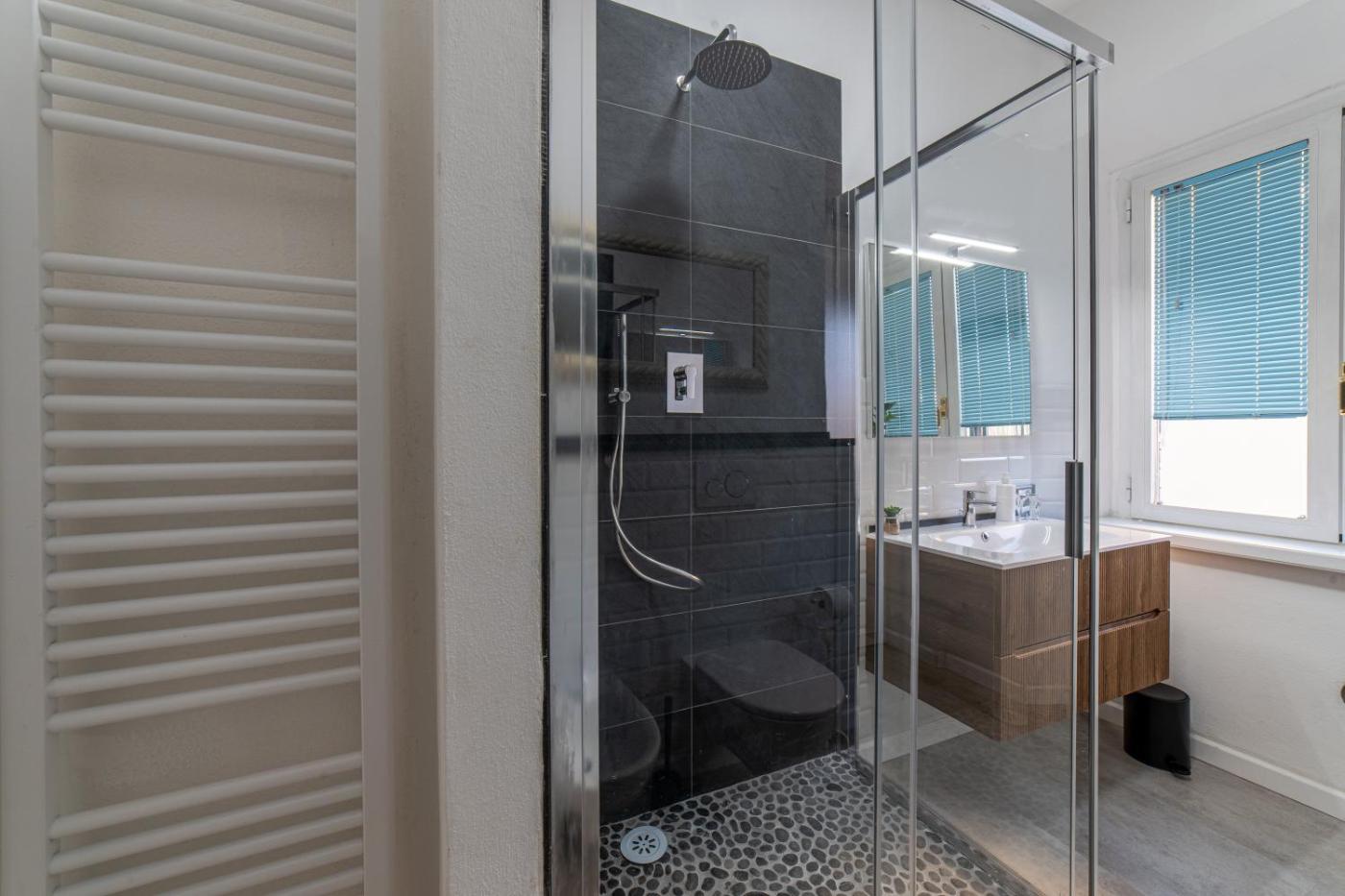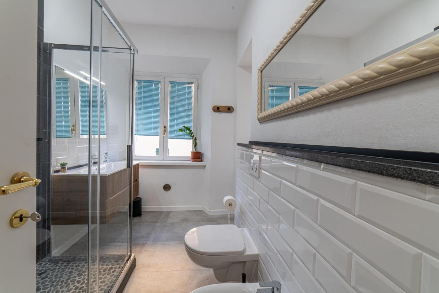 Appartamento con 2 Camere da Letto. Boasting a private entrance, this air-conditioned apartment includes 1 living room, 2 separate bedrooms and 2 bathrooms with a shower and a bidet. In the well-fitted kitchen, guests will find a stovetop, a refrigerator, a dishwasher and kitchenware. The spacious apartment offers a flat-screen TV with streaming services, a washing machine, a tea and coffee maker, a seating area as well as a quiet street view. The unit has 3 beds.