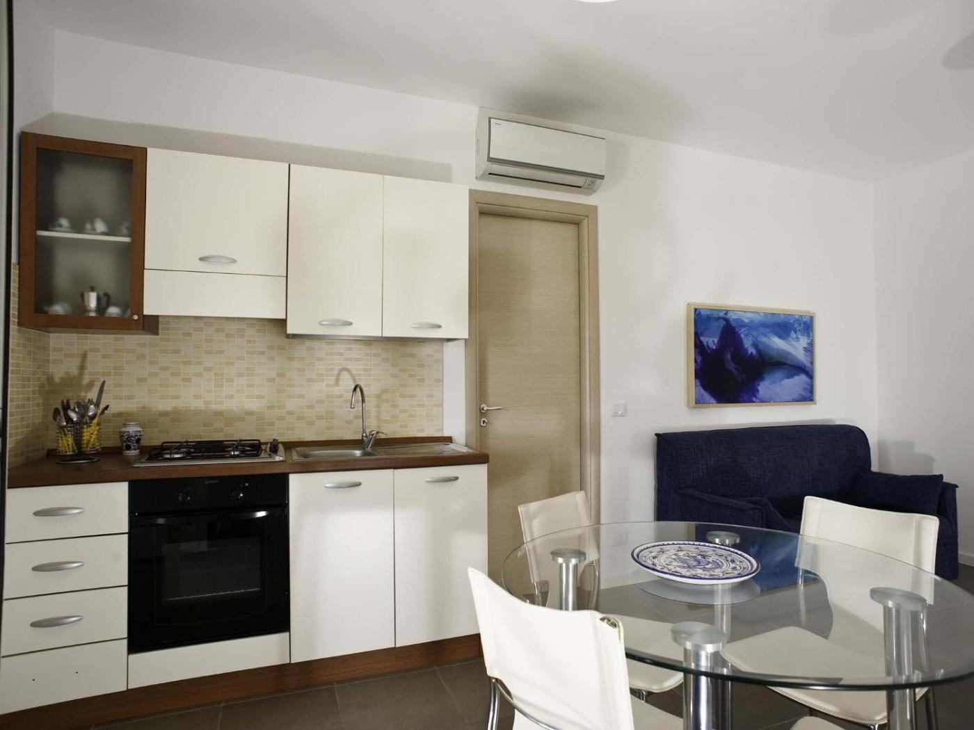 Appartmento Aliga Blue con 2 Camere da Letto - 2° Piano. Sistemazione moderna con balcone, aria condizionata, angolo cottura e zona giorno con TV satellitare a schermo piatto. ;