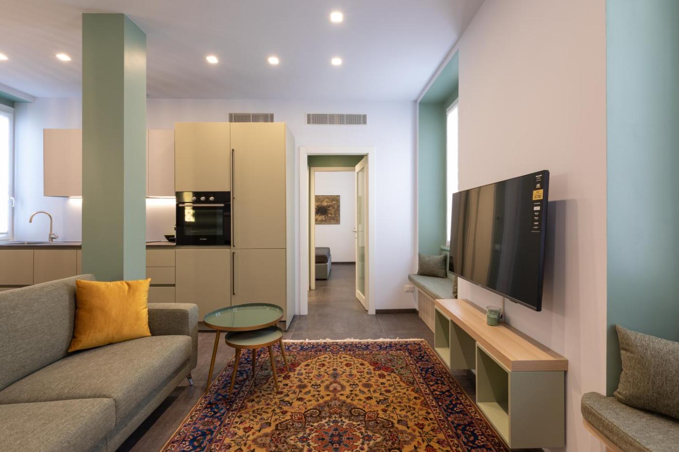 Appartamento con 1 Camera da Letto. The air-conditioned apartment features 1 bedroom and 1 bathroom with a bath or a shower and a bidet. In the well-equipped kitchen, guests will find a stovetop, a refrigerator, a dishwasher and kitchenware. The apartment has tiled floors, a seating area with a flat-screen TV, a washing machine, a tea and coffee maker, as well as a dining area. The unit offers 1 bed.