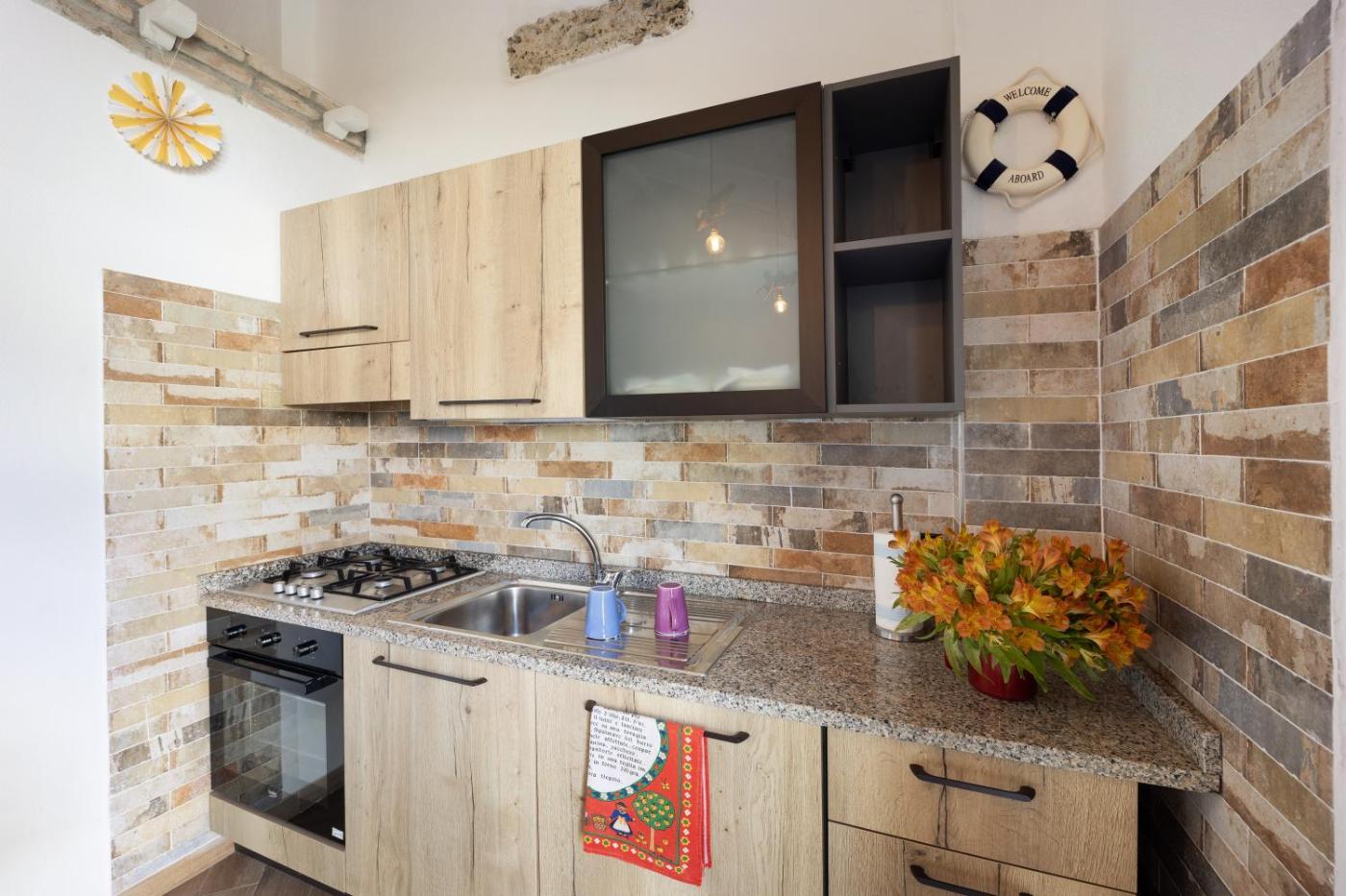 Questa casa vacanze con aria condizionata comprende 1 camera da letto, un soggiorno, una cucina con utensili, microonde e macchina da caffè, e 1 bagno con doccia edi cortesia. Presso questa casa vacanze troverete asciugamani e lenzuola in dotazione.