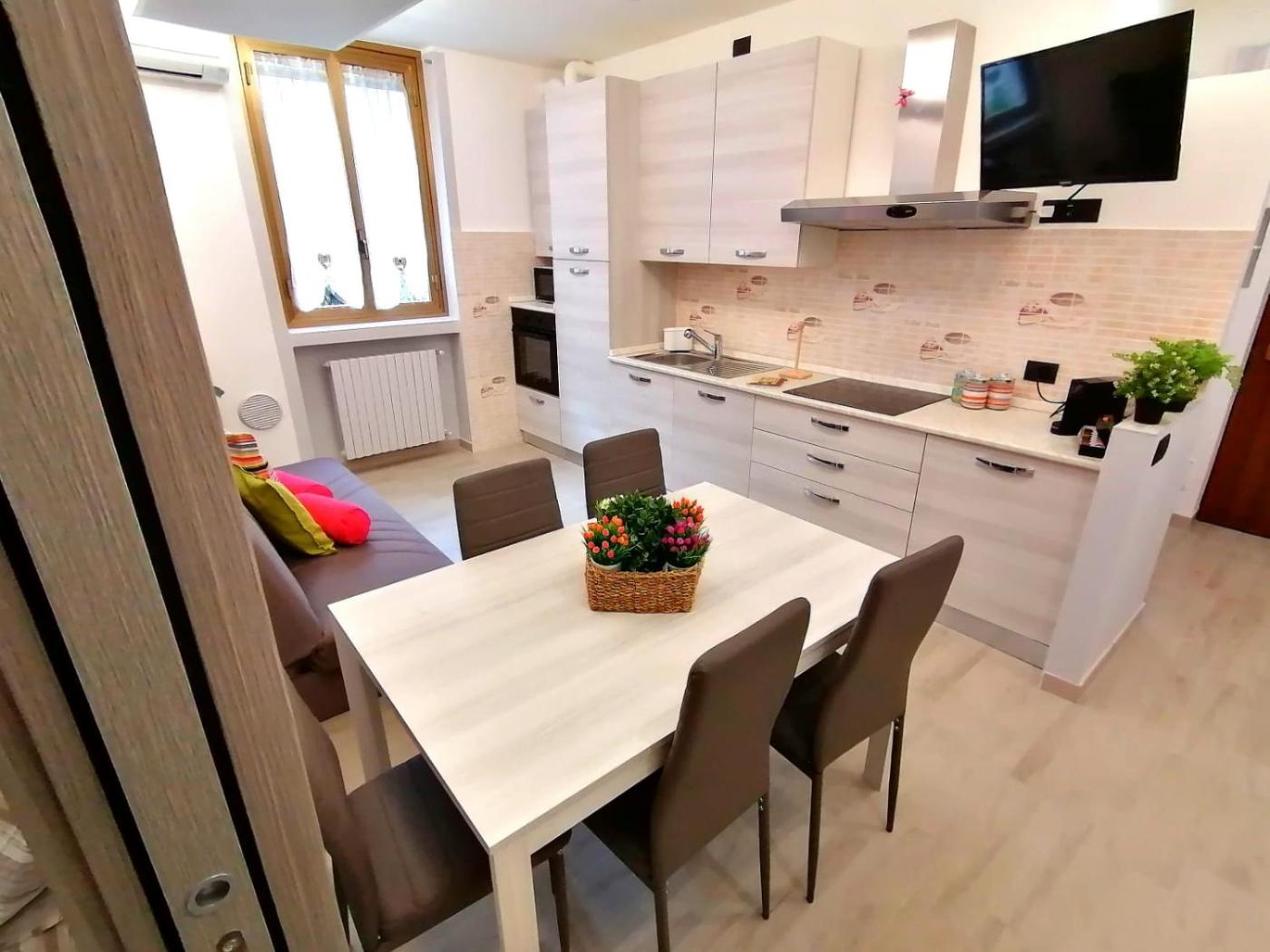 Appartamento con 1 Camera da Letto. This air-conditioned apartment comes with 1 living room, 1 separate bedroom and 2 bathrooms with a shower. Meals can be prepared in the kitchenette, which features a stovetop, a refrigerator, a dishwasher and kitchenware. The apartment has tiled floors, a seating area with a flat-screen TV with streaming services, a washing machine, a tea and coffee maker, as well as a dining area. The unit has 3 beds.