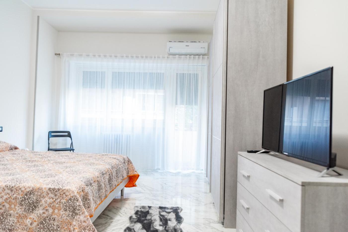 Appartamento con 1 Camera da Letto. This spacious apartment features 1 living room, 1 separate bedroom and 1 bathroom with a shower and a bidet. Guests can make meals in the fully equipped kitchen that features a refrigerator, kitchenware and a microwave. This apartment has air conditioning, a washing machine, a flat-screen TV and a terrace. The unit has 3 beds.