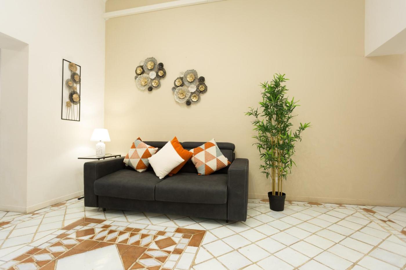 Questo appartamento con aria condizionata comprende 1 camera da letto, un soggiorno, una cucina con utensili, frigorifero e macchina da caffè, e 1 bagno con bidet e doccia. Presso questo appartamento troverete asciugamani e lenzuola tra i servizi offerti.