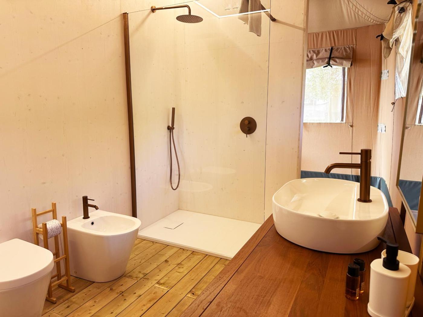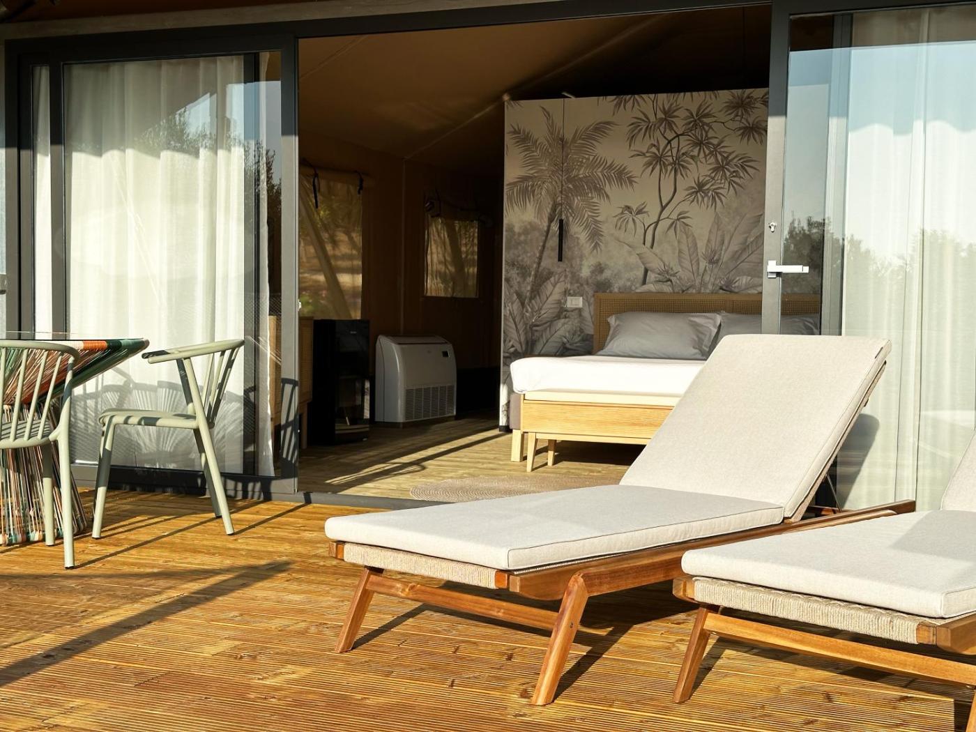 Tenda. The tent provides air conditioning, a private entrance, a terrace with garden views as well as a private bathroom featuring a shower. The unit offers 2 beds.