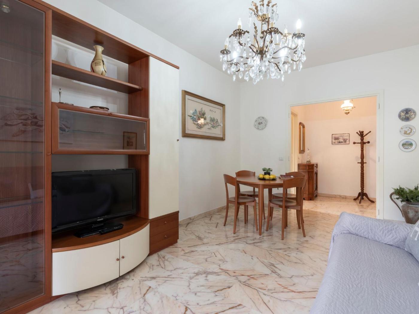 Appartamento. This spacious apartment comes with 1 living room, 1 separate bedroom and 1 bathroom with a shower and a bidet. The fully equipped kitchen has a refrigerator, a dishwasher, kitchenware and an oven. Boasting a balcony, this apartment also features a washing machine, a dining area and a TV. The unit has 3 beds.