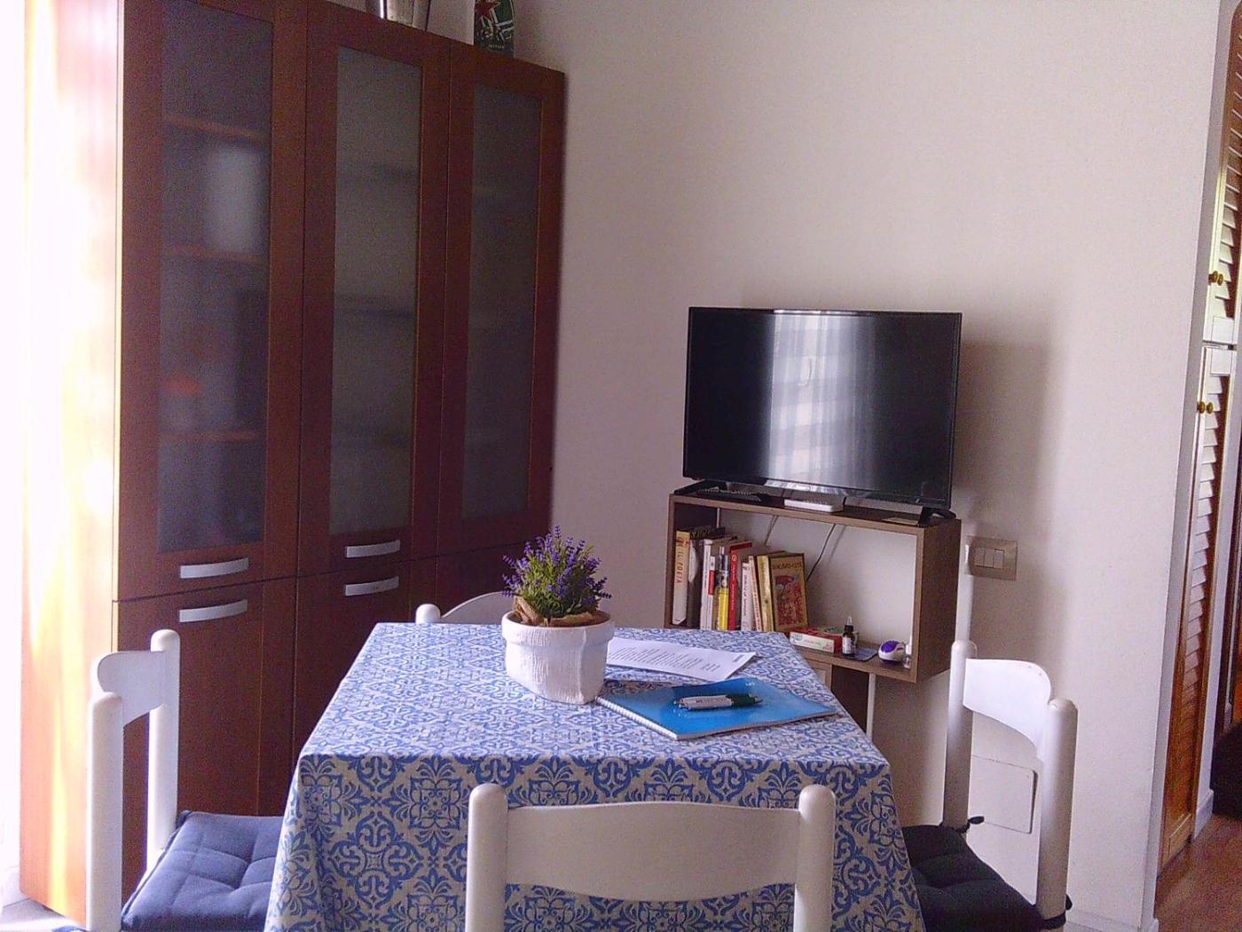 Questo appartamento prevede 2 camere da letto, 1 bagno, lenzuola, asciugamani, una TV a schermo piatto, una zona pranzo, una cucina con utensili e un balcone con vista sul mare.